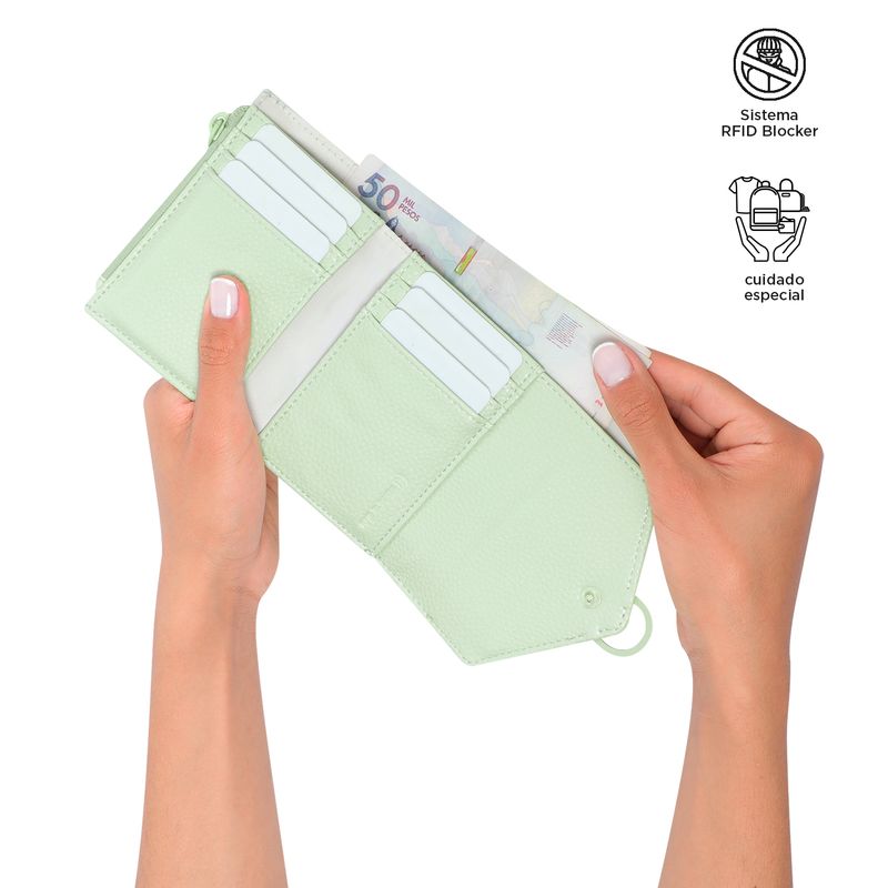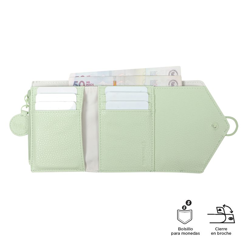 La Billetera Soft Ney es la opción perfecta para las mujeres que buscan un accesorio versátil. Confeccionada con atención al detalle, esta billetera de dos cuerpos pequeña ofrece un bolsillo para monedas, RFID blocker para mayor seguridad en tus tarjetas, cierre en broche para un ajuste seguro, y organizadores para billetes. Completa tu look con esta elegante billetera.