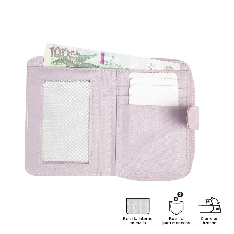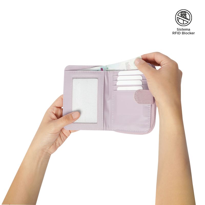¡Comodidad y protección en cada uso con la billetera Texture Twi! Su diseño de dos cuerpos incluye cierre en broche, bolsillo interno, compartimento para monedas y organizadores para tarjetas y billetes. Fabricada en poliamida, es resistente, ligera y de secado rápido. Además, su sistema RFID Blocker protege tu información personal de accesos no autorizados. ¡Consíguela ahora y disfruta de funcionalidad!