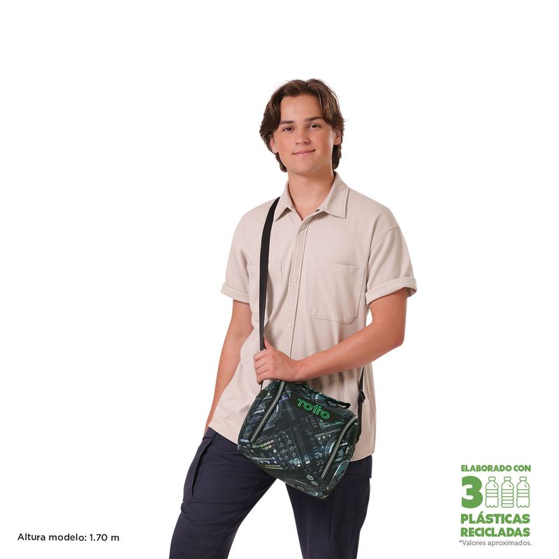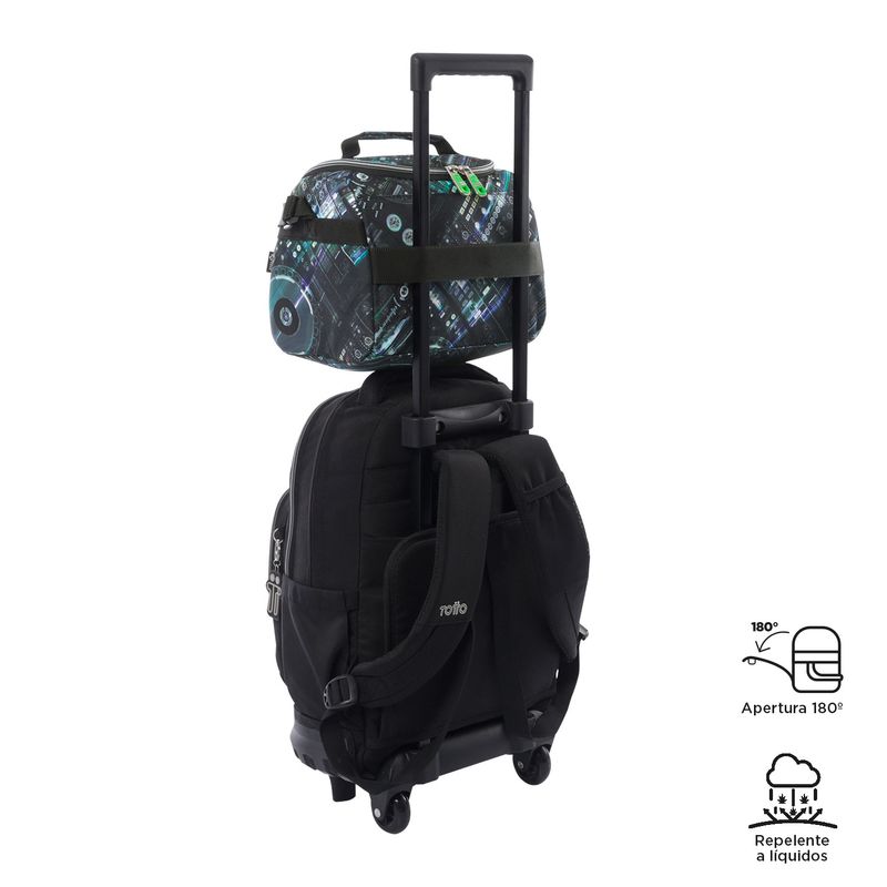 ¡Mantén tus alimentos frescos y organizados! Esta lonchera grande cuenta con apertura 180°, bolsillos de malla con cremallera y es repelente a líquidos. Fabricada con 3 botellas plásticas recicladas, ofrece un beneficio térmico de hasta 5 horas, según las condiciones climáticas. Sus correas ajustables y pasador para sistema de ruedas brindan comodidad. Elige sostenibilidad y funcionalidad en una sola compra. ¡Obtén la tuya ahora!