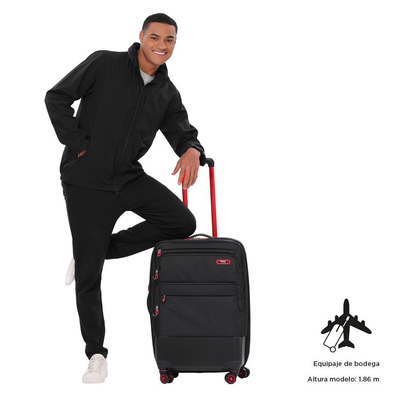 Con una capacidad ideal de 20 kilos, esta maleta mediana Skytem ofrece versatilidad y durabilidad para tus aventuras. Sus ruedas giratorias 360° garantizan un desplazamiento suave y sin esfuerzo, mientras que su sistema de expansión te permite maximizar el espacio según tus necesidades. Los bolsillos adicionales en malla proporcionan una organización óptima para tus pertenencias. Viaja con comodidad y estilo con esta maleta intermedia.