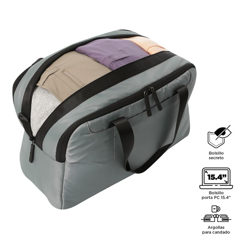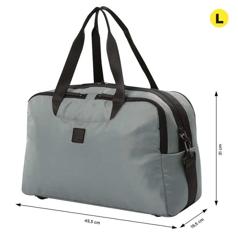 Weekender es una tula viajera perfecta para escapadas de fin de semana. Su diseño sobrio y detalles premium la convierten en una opción funcional y estilizada. Con tres amplios compartimientos, dos bolsillos de gran capacidad y un bolsillo independiente para portátil, ofrece un alto nivel de organización. Además, sus múltiples bolsillos externos y un compartimento adaptable al sistema de ruedas. ¡Ideal para viajes prácticos y organizados!